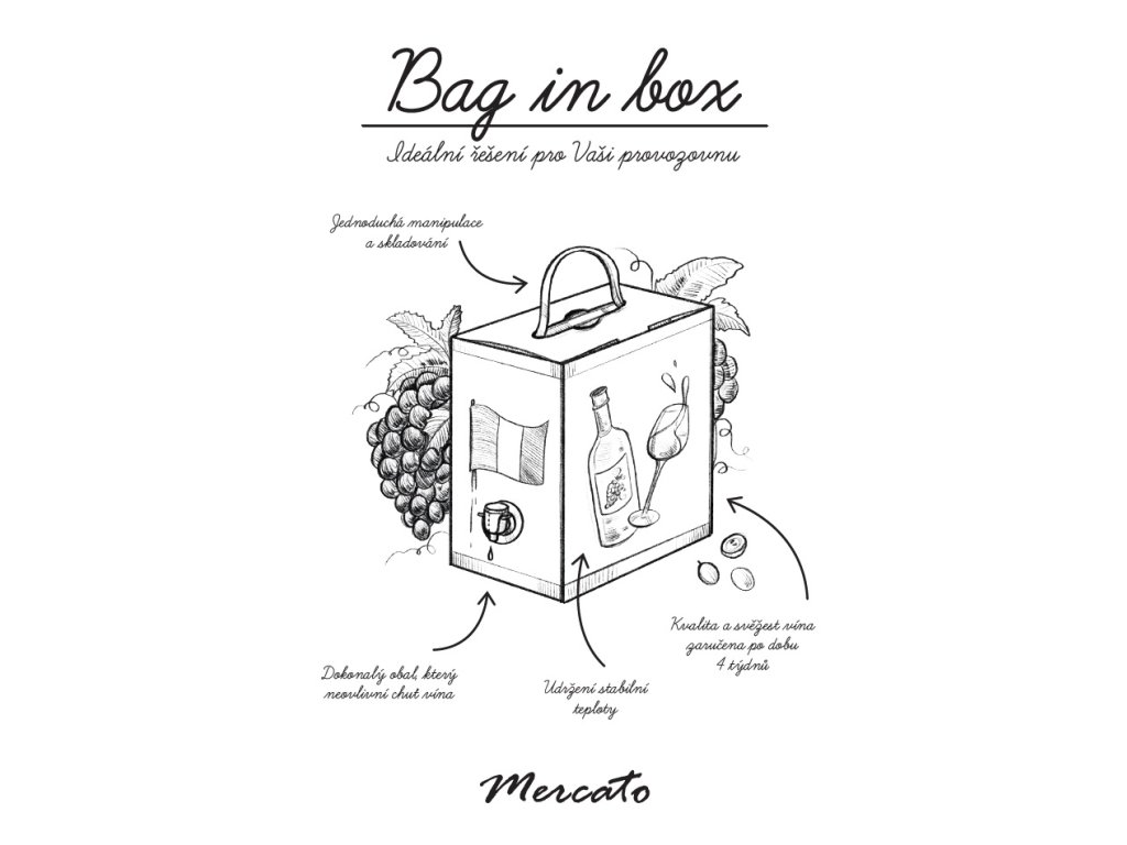 Bag in box obal je ideálním řešením pro ty, kdo hledají praktické, ekonomické a ekologické balení. Tento systém prodlužuje čerstvost nápojů díky minimálnímu kontaktu s vzduchem, což zabraňuje oxidaci. Navíc je kompaktní a snadno skladovatelný, čímž šetří místo. Dávkování usnadňuje jednoduchý výtokový ventil usnadňuje dávkování.